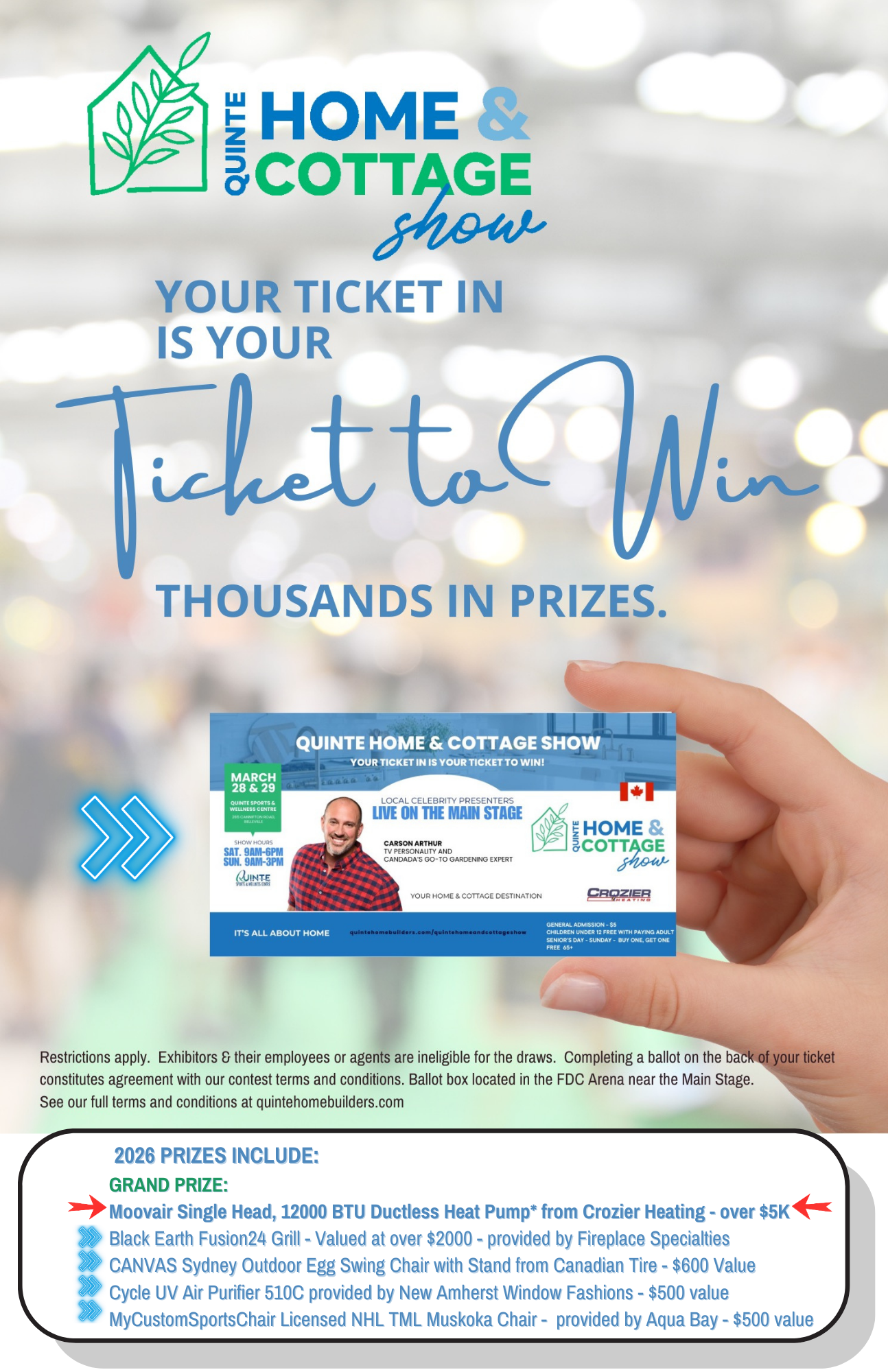By registering or (waitlist registration) binds you to the Show Terms & Conditions: https://www.quintehomebuilders.com/files/2026QuinteHomeCottageShowTermsConditions57_57.pdf